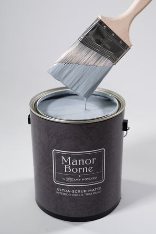 This all-in-one bundle makes it easy to elevate your walls with a rich, scrubbable matte finish. It includes two gallons of Manor Borne paint in your choice of color, our curated 106-color card for inspiration, and a complete Amy Howard Paint Kit with all the tools you need for a flawless, professional result.
