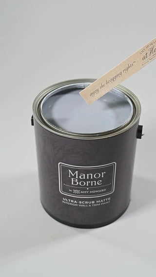 Refresh your walls with ease and elegance. Manor Borne Wall Paint by Amy Howard at Home features a rich matte finish that adds depth and sophistication to any room. With built-in primer and a highly pigmented formula, it delivers smooth, even coverage in just two coats. Designed for refined living and real-life durability, this is premium paint made simple.