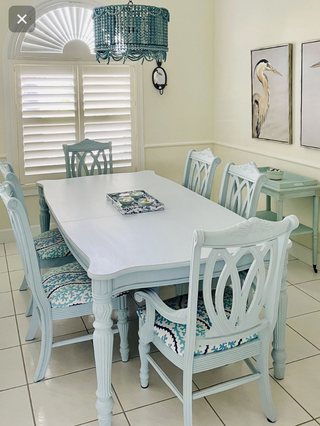 Georgia painted this dining table using One Step Paint in French Blue, and sealed it with Mind Your Own Beeswax.
