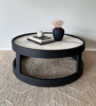 Painted the base and top with One Step Paint in Black and Weybridge White and use Acrylic Glacier Resin Bundle for the table top. Project by @brasswalnut.