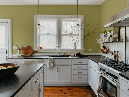 This all-in-one bundle makes it easy to elevate your walls with a rich, scrubbable matte finish. It includes two gallons of Manor Borne paint in your choice of color, our curated 106-color card for inspiration, and a complete Amy Howard Paint Kit with all the tools you need for a flawless, professional result.